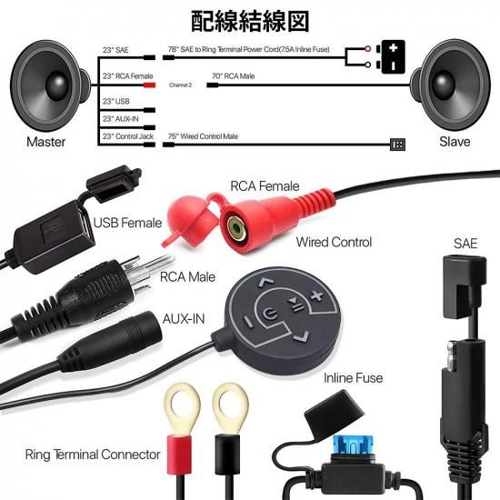 船舶用スピーカー 防水 Bluetooth 接続 手すり取付 12V 300W アンプ 4.5 インチ ボート ヨット ATV オーディオ USB AUX MP3 SPK350Pro